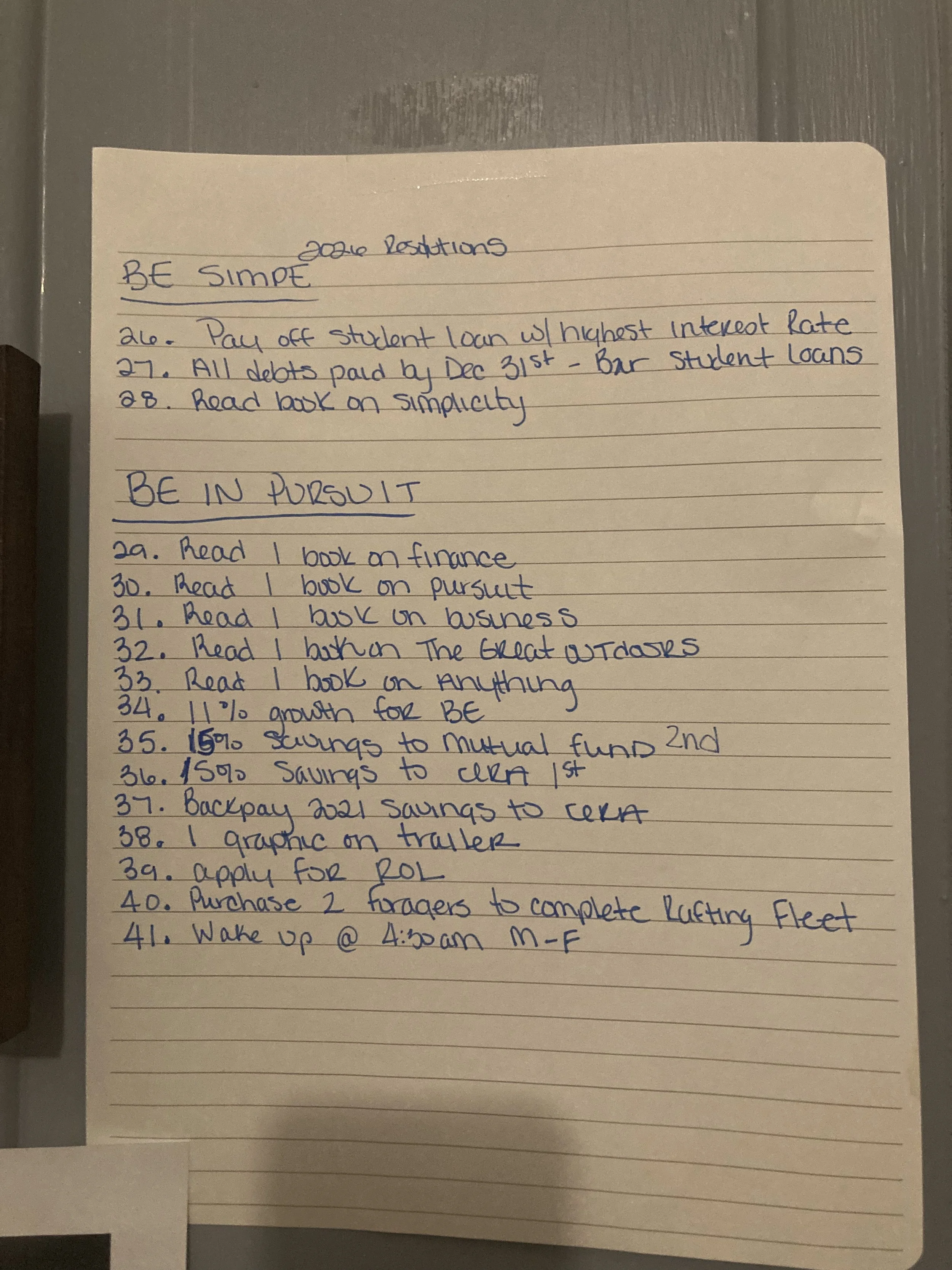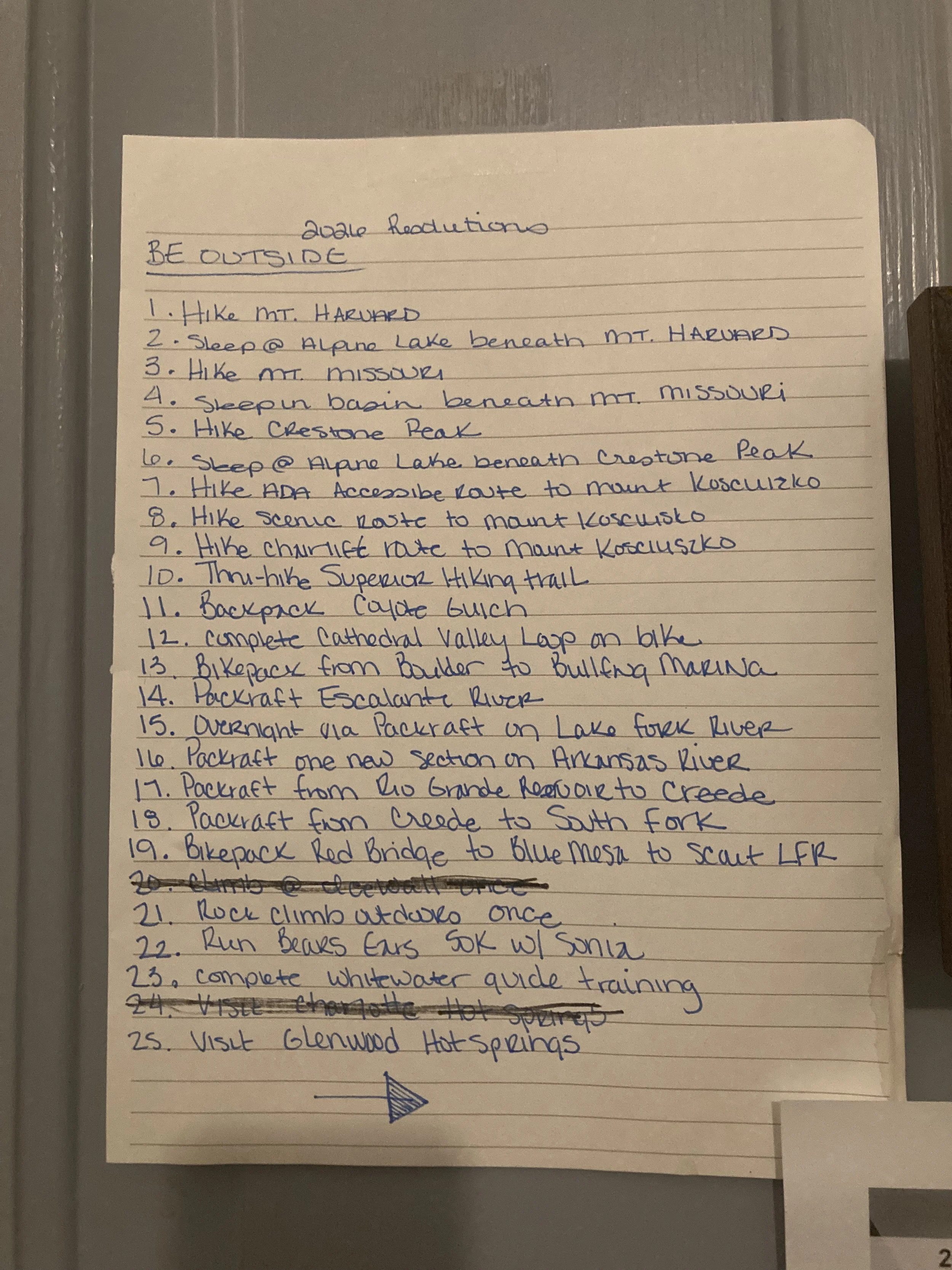 Speaking of goals, the entire point of this blog was to share my resolutions per usual. My contemplative Lake City winter fostered 41 New Year’s Resolutions quite easily! And as always I invite you to steal them, modify them, or simply hold me accountable for them.