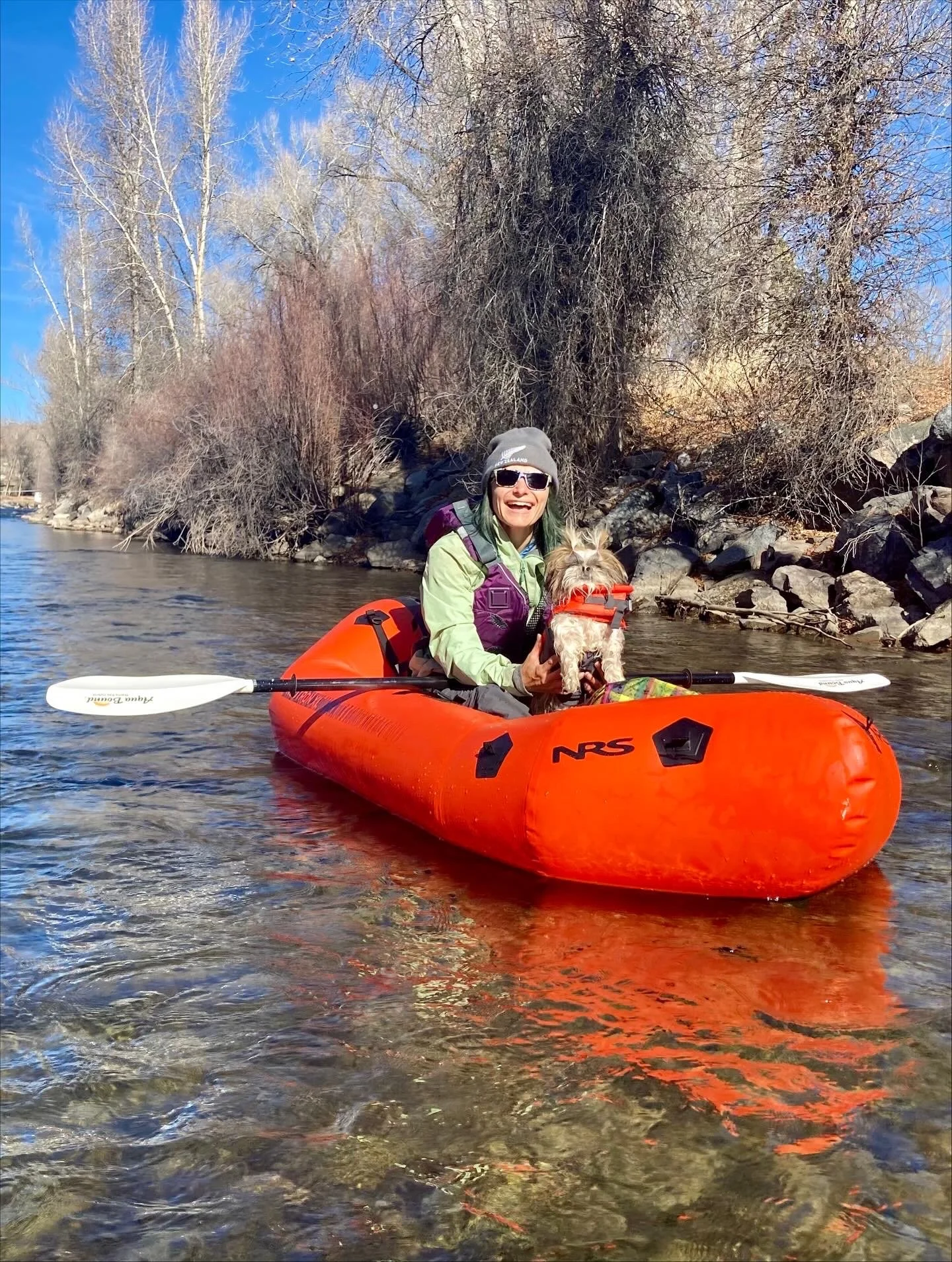 Angela & JoJo on the Gunnison River. Jo loves packrafting; Nells not so much.